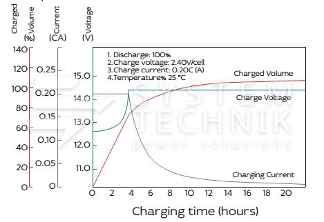 - Срок хранения без подзаряда: 6 мес. при 25°C;