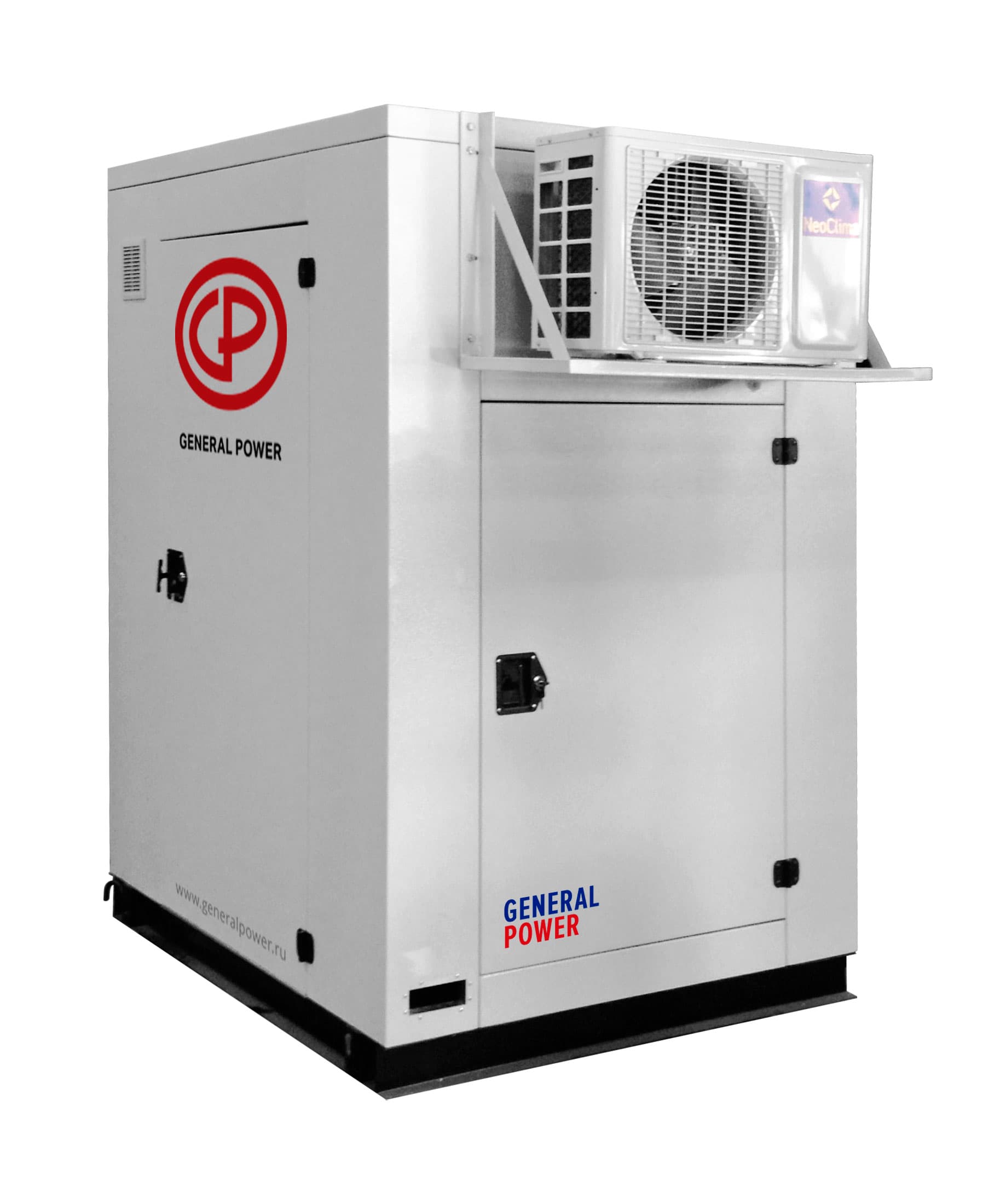 В данной комплектации используется стальной каркас с усиленным основанием и нержавеющий теплоизоляционный материал с сендвич-панелями закрепленный на него, способный противостоять атмосферным воздействиям и температурам -50оС – +50оС. Доступ в генераторный отсек осуществляется через стальную дверь, для комфортного обслуживания внутри имеется встроенное освещение и система контроля температуры. Может быть оборудовано дополнительное помещение для размещения аппаратуры связи, оборудования компрессора и бесперебойного питания, а также для работы дежурного оператора механика.