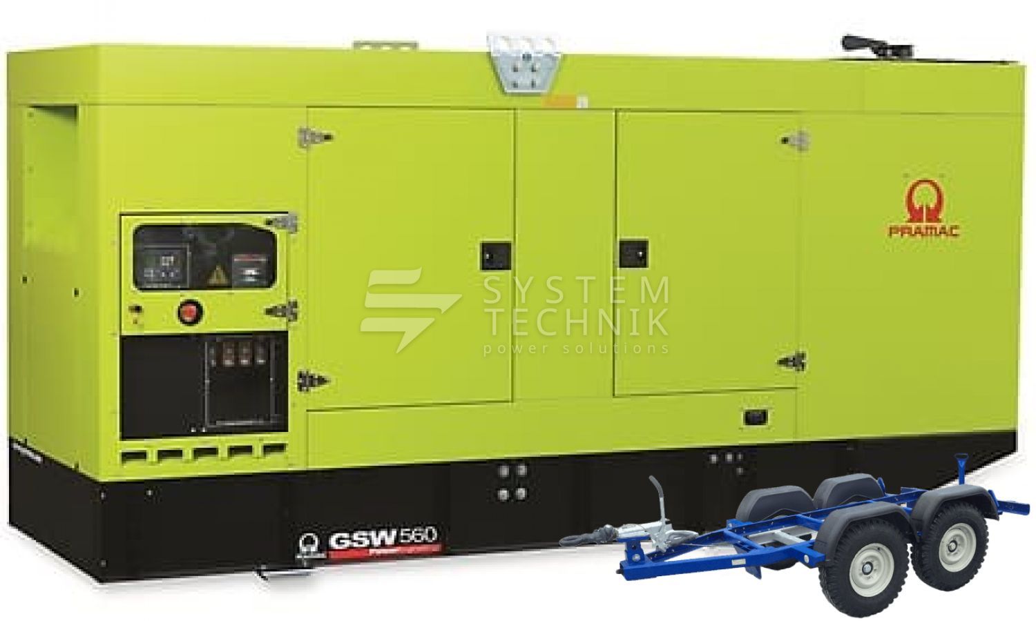 - Дизельный генератор Pramac GSW 560 V 380V В кожухе на прицепе